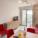 Bright Flat Near The Beach In Bibione har vardagsrum, balkong och sitthörna med luftkonditionering och tvättmaskin som garanterar en bekväm vistelse. Detta boende erbjuder en bidé, en separat toalett och en dusch för ökad komfort.